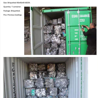 熟合金铝压块,没有7xxx或2xxx系列铝料。杂质不超过1%,非常干净。数量:一个40尺柜约25吨 压块尺寸:40x40x40 货源地:中东