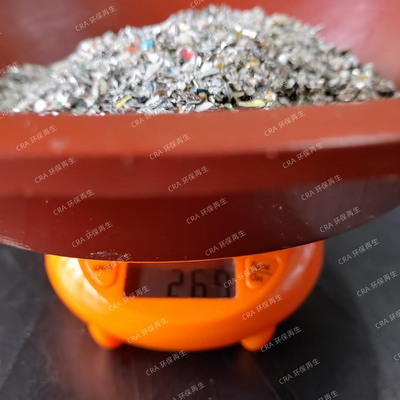 温馨提示:平台私下交易请注意资金安全!(CRA客服电话:18676516007)5柜 货源地:韩国 铝合金片混塑料,20度盐水清洗3道,晾干一晚上,再用吹风干燥10分钟,得出铝片含量(含有0.3左右铁沫,见图6),269g/346g=77.7%,长期稳定供应300吨/月。