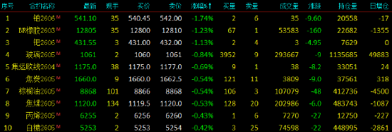 2026年2月12日,早盘开盘,国内期货主力合约涨跌互现,碳酸锂涨超4%,沪镍(131810-1740.00-1.30%)涨超2%,燃料油(3495-7.00-0.20%)低硫燃料油(LU)、豆一(4521-21.00-0.46%)涨超1%。跌幅方面,铂、钯、丁二烯橡胶(1654510.000.06%)跌超1%,玻璃(1439-10.00-0.69%)棕榈(7878112.001.44%)油、焦炭(2232-47.00-2.06%)跌近1%。