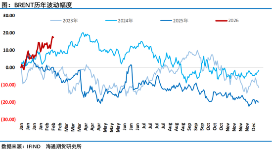 第二件就是直接牵动油价的美国与伊朗之间就谈判和军事冲突之间的博弈,围绕伊朗的种种动向引人关注。美国不断在伊朗周边“重兵集结”,美对伊军事打击“一触即发”之际,阿曼外交大臣2月22日宣布新一轮美伊谈判定于26日在瑞士日内瓦举行。在谈判继续的同时,美国持续通过军事施压以迫使伊朗让步,截至2月20日,美军在中东部署“林肯号”和“福特号”双航母战斗群,总兵力超万人,并集结包括F-22、F-35等数十架战斗机及预警机、加油机等空中力量。这是自2003年伊拉克战争以来美军在中东最大规模的空中力量集结,可支撑持续数周的空袭行动。面对美国持续施压,伊朗方面被迫进行备战,伊朗革命卫队近期在霍尔木兹海峡举行军演,强调“迅速应对海上威胁”。2月17日,伊美第二轮核谈判在日内瓦举行,伊朗提出愿在解除制裁前提下讨论核问题让步,但坚持“导弹能力不容谈判”的红线。伊朗称“比航母更危险的是击沉航母的武器”,强调遭袭将反击中东所有敌对目标。分析指出,美伊矛盾已从核问题转向战略对峙,美国意图通过军事施压迫使伊朗让步,但伊朗导弹库存及地区盟友反制能力仍是美以顾虑。特朗普2月19日称,将在“未来10天内”决定是否对伊动武,并警告若伊朗拒绝协议,打击将比2025年“更猛烈”。美方匿名官员透露,军事行动可能包括摧毁核设施残余及政权更迭目标。美国官员表示,目前的外交努力可能是特朗普总统在发动大规模美以联合军事行动(可能直接针对伊朗最高领袖哈梅内伊)之前给予伊朗的最后机会。从时间表来看,美国对伊朗是否采取军事行动的谜底或许会在进行了近2个月的炒作后迎来揭晓谜底时刻。而这个过程几次军事行动风险的升级已经推动了油价走出了2年来的最佳年度开局,地缘风险给原油带来了10美元左右的风险溢价,也进一步影响到了资金对油价的预期。从去年年底的悲观预期中不断改善回暖。典型体现是地缘炒作这段时间专业机构的持仓迅速从空头转向增持净多头寸。最终如果美伊之间爆发冲突危及霍尔木兹海峡石油运输的局面,从当前市场情绪及预期来看,可能会推动油价冲向90美元甚至更高目标。如果伊朗最终妥协让步,军事风险降温,市场则会迅速下调预期。