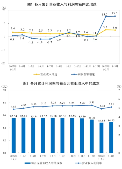 4月27日,国家统计局网站发布2026年1—3月份全国规模以上工业企业利润情况。数据显示,1—3月份,全国规模以上工业企业实现利润总额16960.4亿元,同比增长15.5%。