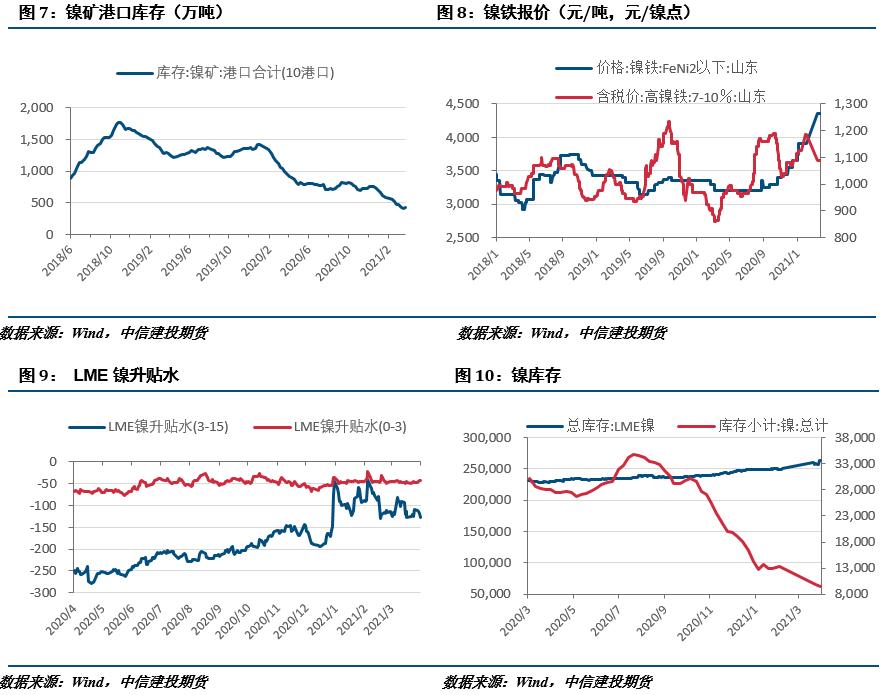 宏观面,地缘政治紧张、美联储表态保守等因素令近期美债收益率走低,资产估值压力得到缓解。国内方面,一季度经济数据稳中向好。产业方面,菲律宾放宽矿业政策,远期镍供应预期增加施压镍价;镍铁成交稀少,随着镍矿价格的下移,镍铁成本支撑减弱;不锈钢价格大幅回调,但不锈钢生产利润转负,期货大幅贴水,不锈钢期货价格下方空间有限。总的来说,近期宏观面利好因素仍存,产业端出现一定不利因素,不过镍及不锈钢下方均有一定支撑,后续不宜过分悲观。沪镍2106合约参考区间120000-126000元/吨,SS2106合约参考区间13700-14400元/吨。