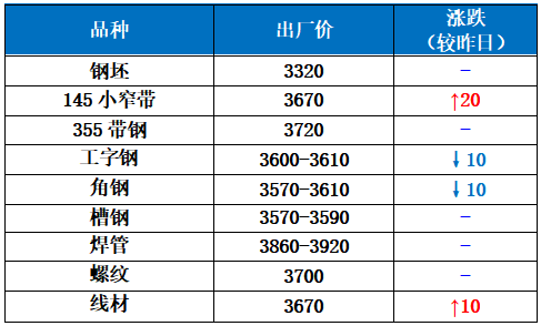 带钢:9月28日唐山国义、经安、首唐宝生、天物顺通等主流钢厂小窄带出厂价涨20,部分厂家出清日产,截至发稿报3670元/吨。355系带钢报稳,唐山瑞丰报3720元/吨。
