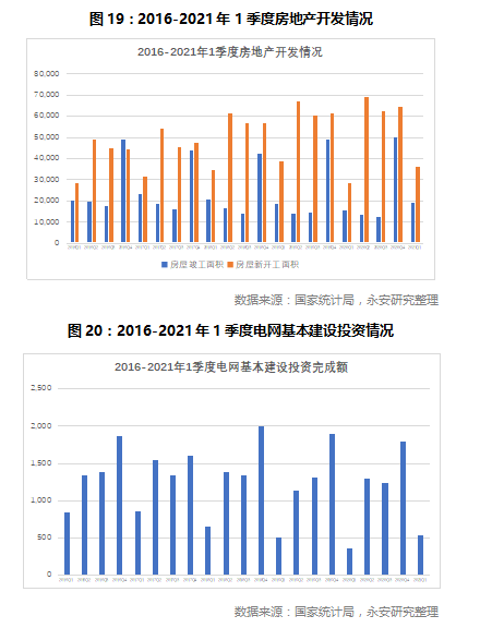 基建数据方面,一季度房屋竣工面积1.91亿平方米,同比增长22%,新开工面积3.62亿平方米,同比增长28.4%。电网基本建设投资完成额一季度累计540亿元,同比增长47.9%。