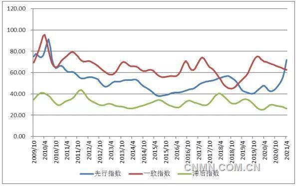 2021年4月,先行合成指数为71.9,比上月上涨9.8点。中国钨钼产业合成指数趋势见图3。