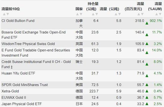 图:截止2021年3月31日全球黄金ETF最高流入情况