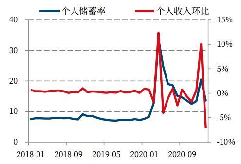 需求端,在新一轮财政刺激向居民发放1400美元的现金支票后,居民收入大幅增长,消费进一步回暖。从3月零售销售数据表现上看,零售销售环比增长9.8%,核心零售销售环比增长8.5%均高于市场预期。其中体育爱好乐器、服装、汽车等类别增长幅度均超15%。此外,美国密歇根大学消费者信心指数也出现了全方位的进一步上行,消费者对未来一年通胀的预期值升至3.7%近10年来高位,反映出居民消费火热前景。然而还有大量资金以储蓄的形式留存在居民部门,目前美国储蓄率仍处在13.6%高位,未来消费上行还有较充足的动力,短期内通胀仍有望进一步上行,这将对贵金属形成提振。