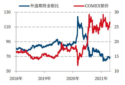 展望后市,供应链受损及需求回暖将继续驱动美国通胀水平在短期内上行,美债利率在前期冲高后或将以震荡为主。市场对货币政策调整预期已有所消化,美联储对短期通胀仍持较为容忍的态度,就业复苏有所加速但持续性仍待观察,购债规模短期内难以转向缩减,建议密切关注美联储4月货币政策会议中政策调整情况,叠加另外疫苗接种铺开实现全面免疫非坦途,贵金属有望延续阶段性反弹。然而长期来看,整体经济复苏环境下货币政策宽松程度边际趋紧,贵金属面临长线重心下移压力。白银在工业属性驱动下将受益于光伏需求增长,金银比仍有趋势性下行的潜力。