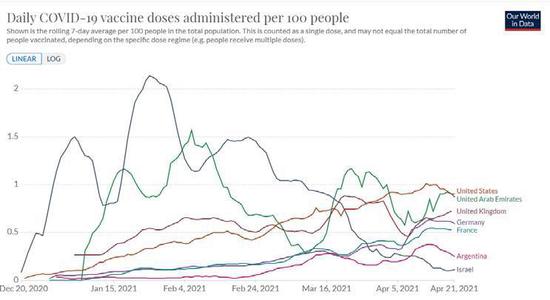 疫苗方面,4月继欧洲药品管理局(EMA)在宣布阿斯利康疫苗在接种后发现与罕见血栓可能存在关联,欧洲多国已暂停或调整了阿斯利康疫苗的接种范围后,强生疫苗也出现了类似的接种后出现罕见血栓症状,被美国食品药品管理局(FDA)紧急叫停,但月底重新获批继续使用。由于疫苗质量问题的出现,及疫苗在前期铺开后或面临接种意愿比例不高的限制,美国疫苗接种速度进一步提升速度有限,这使得市场对经济复苏的乐观预期有所修正。