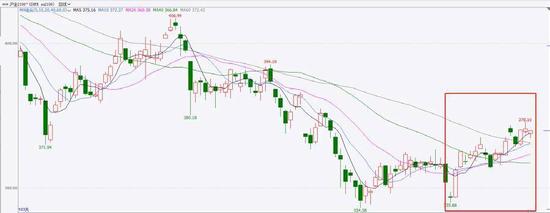 2021年4月,沪金强势反弹。截止4月23日,沪金2106合约的月度最低点在357.36元,最高点在378.10元,目前价格在376元附近,月度涨幅约5%。