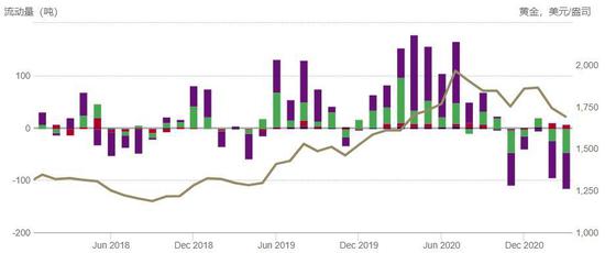 图:全球黄金ETF流入或流出情况(单位:吨)