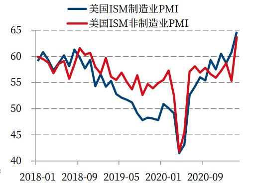 整体经济景气程度方面,美国3月制造业PMI数据升至64.70刷新1984年以来新高,其中价格指数升至85.6,所有原材料价格均出现上涨凸显出通胀压力。美国3月ISM服务业PMI飙升至63.70创有记录以来新高远超预期,其中订单指数和企业活动指数双双走高,反映出美国经济复苏动力强劲。