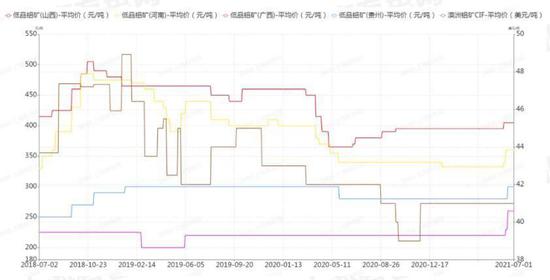 国内矿方面,矿难事件导致的停产整治、环保督察、党庆等因素仍对山西、河南地区矿山生产产生了影响,党庆期间对国六车限行,预计7月2日运输恢复正常。目前河南矿石供应紧张,出现从贵州购买矿石的情况。当前山西个别复产中的氧化铝企业,亦对当地矿石供应紧缺有所担忧,选择不进一步增产。