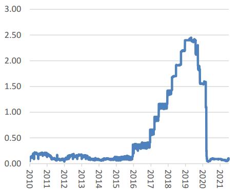 6月美联储议息会议维持基准利率水平与购债规模描述并大幅上修今年经济增长及通胀预期。美联储发布6月议息会议声明,维持联邦基金目标利率0%-0.25%不变并表示每月增持至少800亿美元美债及400亿美元MBS。但做了技术性调整,IOER与ONRRP被分别上调5BP,以应对近期巨大的隔夜流动性回笼压力。此外,与3月FOMC相比,本次会议中美联储大幅上调了年内经济增长及通胀预期。其中,美联储将2021年GDP增长预期由6.5%大幅上调至7.0%、维持2022年GDP增长预期3.3%的同时又将2023年美国经济增长由2.2%上调至2.4%。此外,美联储对2021-2023年美国失业率的预期变化不大,但将2021年PCE通胀预期由2.4%大幅上调至3.4%、将2021年核心PCE通胀预期由2.2%大幅上调至3.0%。点阵图显示2023年加息概率上升;但鲍威尔试图缓和看似鹰派的气氛。与3月FOMC中点阵图认为2023年或将有一次加息相比,本次点阵图中认为2022年加息的官员增加了三位同时更多官员认为2023年应加息1-2次。这一变化大概率是对美国经济即将强劲复苏、通胀或将在较长时间内超过联储目标的反馈。鲍威尔也在讲话中提到通胀最终可能比美联储预期得更高、更持久。但鲍威尔亦强调失业率低估了就业缺口、不应过度解读点阵图变化、加息仍遥远。