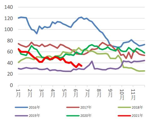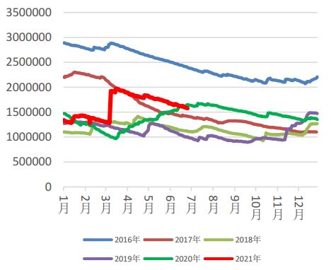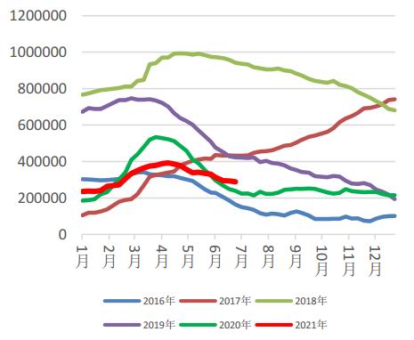 分板块来看,原生铝合金方面,汽车消费不足,芯片短缺,高温假到来持续压制原生铝合金需求。6月底乘联会表示,芯片影响将在近期快速缓解,随着更多产能的释放芯片问题在9月应该基本解决。亦有某原生铝合金龙头企业反馈目前看7月新增订单环比有所上升,但大部分原生铝合金厂仍反馈订单不断减少。待到9月份随着高温假逐渐结束及芯片问题得到缓解,原生铝合金行业开工率或可得到较大改善。铝板带方面,更多板带企业反馈新增订单减少,但在手订单量尚可,开工率整体仍处于较高水平。有板带企业反馈部分下游客户看跌铝价,提货意愿不甚积极。分产品看,目前罐料仍是订单最为饱满的板带产品,7-8月作为传统消费淡季,板带企业普遍预计订单将逐渐减少,预计未来两月板带企业开工率将持续走低。铝线缆方面,据目前的调研情况来看,国网有几个项目交货期在七月底,龙头企业的在手订单较好,七月份排产有望继续提升。短期预计国内线缆龙头企业开工率持稳向好为主。铝型材方面,龙头企业仍然订单充裕,待产订单普遍在1个月左右,其他部分规模企业新订单增量却不及预期,中小型企业则有所缩减。内需尤其是建筑型材的相关需求有所下滑,工业型材方面则受淡季效应影响不大。出口方面由于海外疫情及海运费高企并未有所好转,部分企业出口量同比降幅达20%-30%。国内型材企业整体6月份订单环比转弱明显,对7月份的预期也是稳中偏淡,预计7月份开工率下调的可能性较大。铝箔方面,6月整体消费环境不如5月,企业普遍认为7、8月产销量均难有所上涨,亦有部分企业表示已明显感到新增订单减少。再生铝合金方面,企业反馈订单依旧不乐观,新增订单受下游传统淡季影响持续下滑,压铸企业维持刚需采购,对上游需求减弱。另外市场整体废铝供应不充裕,且低价原料较少,有企业因原料短缺而减产。