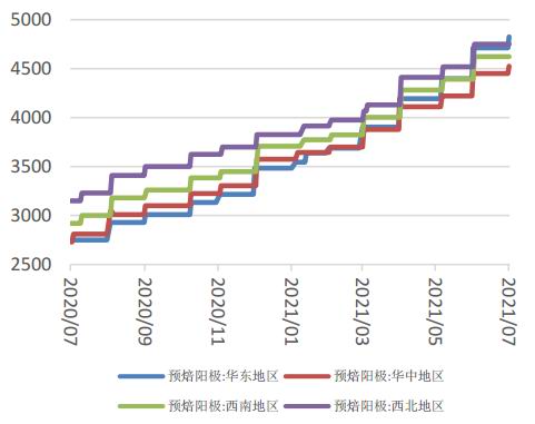 截至6月底,长江现货A00铝平均价为18760元/吨,电解铝企业平均生产成本在14400元/吨附近,电解铝单吨即时盈利在4300元/吨附近。6月份,电解铝原料端持稳运行,氧化铝和预焙阳极有一定上涨,但幅度有限,电解铝成本抬升有限,盈利更多的跟随铝价波动。预计后市国内氧化铝产能过剩状态持续,上涨空间不大,其他辅料持稳运行,预计国内电解铝成本持稳运行为主,尚需关注各个区域电价的情况。