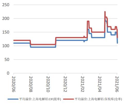 图6 上海保税库电解铝平均溢价(美元/吨)