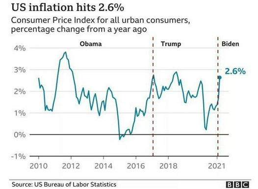 美国5月CPI数据继续维持上涨势头。其中5月整体CPI同比大涨5%,超预期的4.7%,增速创2008年8月以来最高;与此同时,剔除不稳定的食品与能源价格的核心CPI年率同样高于预期,达3.8%,超市场预期3.5%,增速创1992年以来新高。