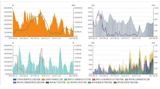 纽铜、伦铜、沪铜库存及保税库分布对比。值得一提的是,保税库的库存远高于沪铜的显性库存。