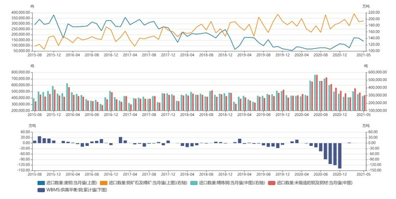 铜进口结构及WBMS供需平衡统计