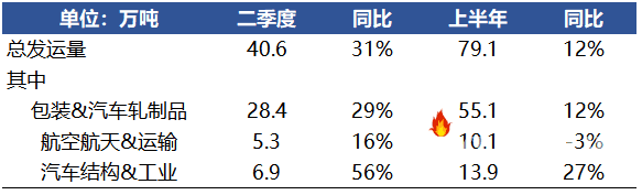 2021年上半年,公司总发运量同比增加了12%,增量主要来自包装和汽车轧制品以及汽车结构和工业部门。