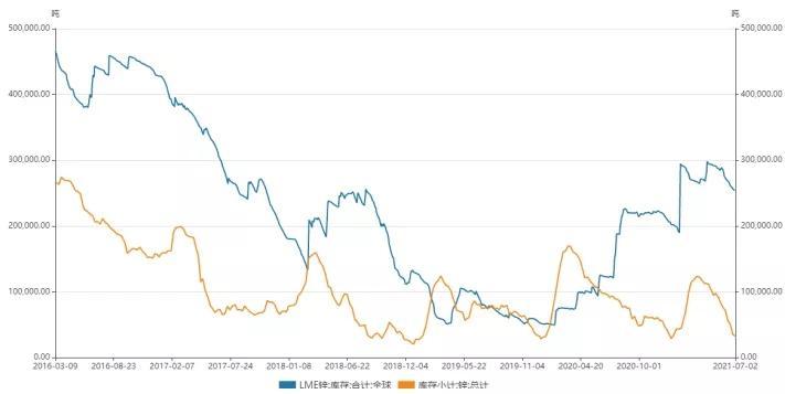 库存方面,截止至7月5日,LME库存至253075吨;上期所库存至32490 吨。锌锭社会库存总量为11.29万吨,库存持续去化。