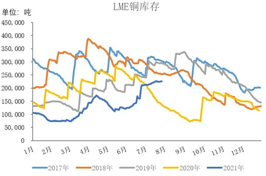 基本面方面,7月份国内淡季不淡,延续去库状态。我们预计8月份国内可能有小幅垒库,一方面是进口铜报关量增加,另外一方面终端消费边际下滑,加上废铜增多的原因,会挤占一部分精铜消费。COMEX铜库存可能会继续维持低位,现在运输不太通畅,北美消费仍然很强劲,北美铜库存持续降低。