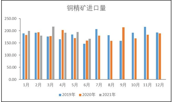 根据海关总署数据显示,中国6月铜矿砂及其精矿进口159.4万吨,5月为169万吨,环比下降5.7%,同比增加8.7%。