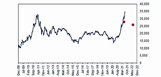 到2021年底,市场紧俏状况应该会开始得到缓解,价格会缓慢走低。因此,惠誉预计锡价将在今年年底前见顶。