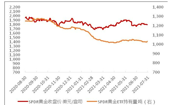 从全球最大的黄金ETF—SPDR黄金持仓来看,该基金黄金持仓7月29日为1031.46吨,较前上月末减少14.32吨,近一个月连续呈现下降趋势,表明市场对于未来贵金属的走势并不乐观。与此同时,交易所黄金库存继续高位回落。2021年7月29日,COMEX黄金库存3526.16万金衡盎司,国内的上期所黄金库存为3222千克。
