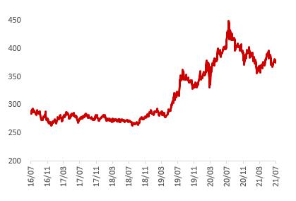 一是Delta变种病毒扩散导致疫情形势反弹,使得劳动力市场承压,影响经济复苏的预期;二是美国通胀水平保持高位,市场判断通胀水平并不会立即调头向下,可能会比预期要久;三是10年期美国国债收益率下行,带动实际利率水平走低并保持低位波动,支撑黄金价格;四是美联储最新的议息会议声明中保持相对中性的基调,维持当前宽松的货币政策不变,对7月黄金价格形成一定的支撑力度。