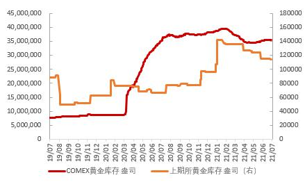 政策方面,欧央行会议纪要将中期通胀目标从“接近但低于2%”修改为“2%”,这意味着可能会有“通胀略高于目标的过渡期”,该调整说明欧洲央行可能预期到欧洲区域的复苏,以适度的通胀来换取经济持续稳定发展。欧洲央行副行长金多斯表示,即使复经济复苏是成功的,仍会面临很多不确定性,在未来一段时间内将需要为经济提供大量货币支持,说明欧洲央行短期内也不会过早的加息,会继续维持宽松的货币环境,短期对黄金价格形成一定的支撑,但这些信息已经被定价。未来伴随经济持续向好的背景下,预期市场将逐步交易加息的预期。