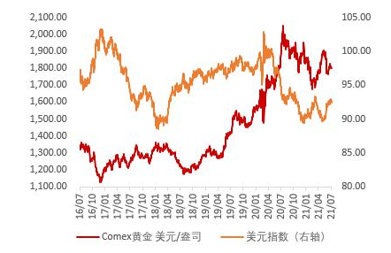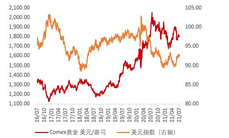 图1:Comex黄金和美元指数走势对比