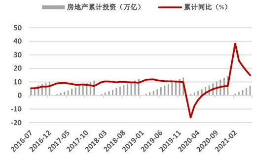 图12:房地产开发投资额及同比(单位:万亿)