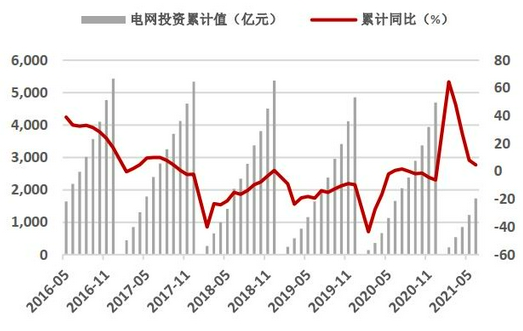 图11:电网基本建设投资完成额及同比(单位:亿)