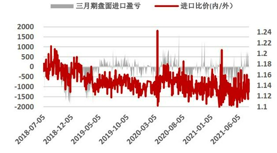 图7:进口铜盈亏及比价