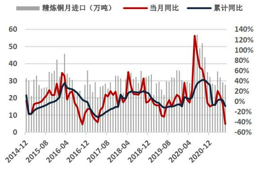 图4:精铜当月进口量(单位:万吨)