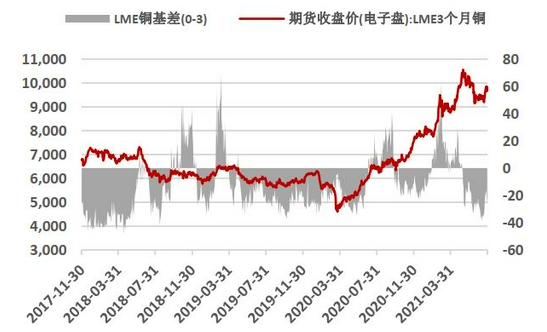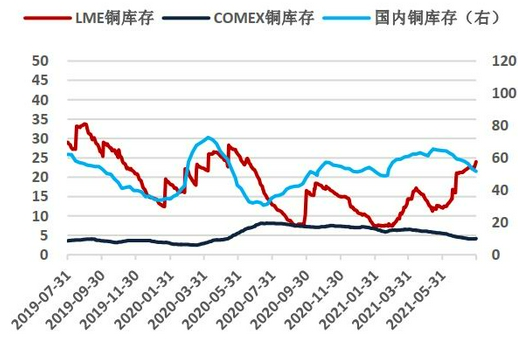 LME库存自今年3月以来整体上保持着累库状态,目前与2020年5月的高点仅差3.7万吨。目前虽然欧洲经济数据表现良好,但Delta疫情的蔓延使得短期前景并不非常乐观,LME库存的拐点预计还需等待。