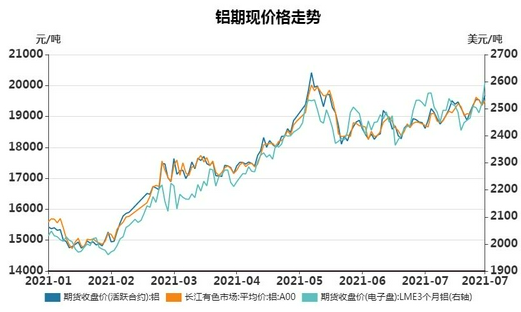 2021年7月铝价整体呈现震荡上行,月度涨幅7.32%。7月初,美国就业形势持续改善,物价不断上升,美联储转鹰及全球疫情升温推动的避险情绪给美元带来支撑,美元指数震荡上行。国内停产较久的铝厂也相继传出着手复产,总体供应有所复苏。不过,7月中旬过后,全国多地出现电荒,云南继续限电限产致近百万吨停产,蒙西铝厂降负荷及广西新投暂缓,叠加河南发生汛情,企业受灾被迫减产、停产。此外,第二批国家储备铝9万吨,整体数量略低市场预期,而铝锭、铝棒持续去库,铝市仍未完全进入累库。此外,美国7月货币政策会议决定,将超额准备金利率(IOER)维持在0.15%不变,基准利率维持在0%-0.25%不变,美国二季度实际GDP同比增长6.5%,远不及市场预期的8.5%。总体看,美国经济数据不及预期,美联储维持宽松政策不变叠加本月铝市供应端扰动不断,下游累库拐点延后,整体铝价表现偏强。
