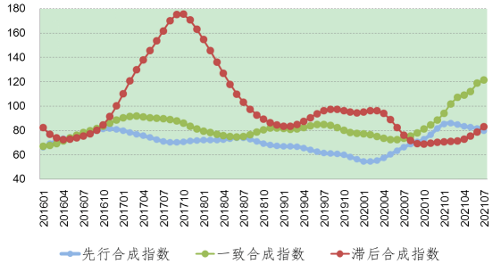 2021年7月份,先行合成指数为79.7,较上期回落2个点。中国铝冶炼产业合成指数曲线见图2。构成先行合成指数的5个指标中,经季节调整后,较上月回落的指标包括铝冶炼投资总额、商品房销售面积分别下降2.8%、0.9%;同比回落的指标是铝冶炼投资总额,下降20.2%。