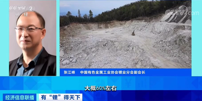 中国有色金属工业协会锂业分会副会长张江峰:大概60%左右我们需要从国外进口锂辉石精矿来作为原料,生产锂盐。