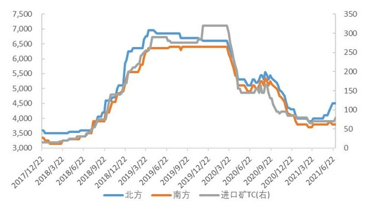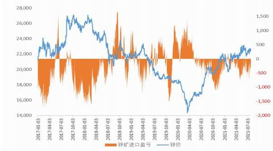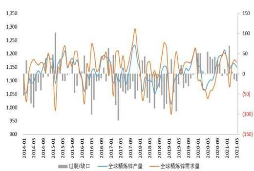 从锌精矿供需情况来看,国际铅锌小组数据显示,2021年5月全球锌精矿产量108.1万吨,同比增长23.85%,环比增长2.76%。从月度产量来看,5月海外矿石产量继续保持在正常水平,并延续环同比正增长态势,在季度内锌价创出历史新高的情况下,因精矿加工费维持在相对低位,使得矿山企业的复产积极性非常高昂,除了受防疫政策无法满产的矿山以外,其余矿山均已进入到正常的生产序列。随着疫情风险的持续下降,海外矿山产量的恢复速度持续加快。不过受Delta变异病毒再度发酵影响,部分国家的防疫政策或出现反复,后续产量的顺畅释放仍存在变数。