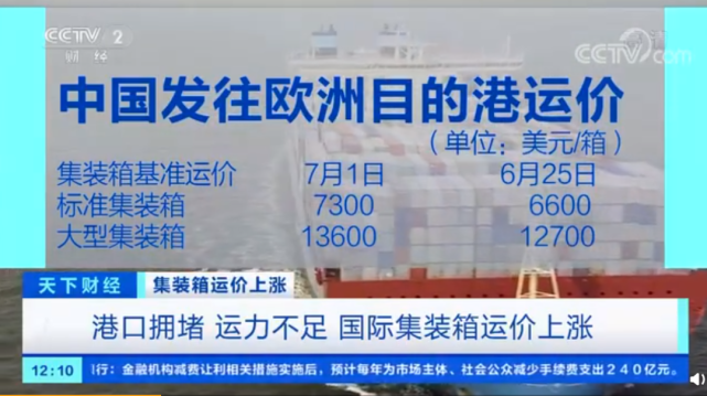 我找一个运往欧洲的海运价格新闻,让大家感受下这个价格飞涨的速度。