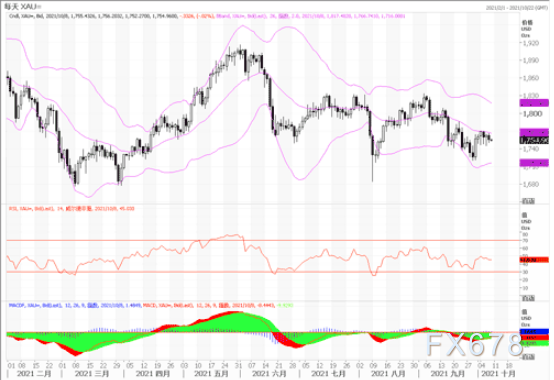受到美元走坚和美国10年期国债收益率上升的压力,黄金的短线反弹受到压制。10年期美债收益率创下6月18日以来高位至1.571%;美元距离上周录得的去年9月28日以来高点94.504不远,削弱了黄金对其他货币持有者的吸引力。基于货币政策预期,金价的势头偏向于下行的态势仍未得到很好的改善,全球经济中仍有显著的成本压力上升迹象,这将继续促使投资者关注央行收紧政策。而本周即将发布的非农就业报告可能会改变黄金市场运行逻辑。一旦完全消化缩减购债预期,金融市场将更加关注2022年经济前景,这将为许多投资者重返黄金市场开绿灯。因此,在关键的就业数据出炉前,市场保持谨慎。与此同时,随着美国债务上限的最后期限将至也令黄金空头不敢轻易出手。金价可能会在1720美元至1775美元之间盘整。
