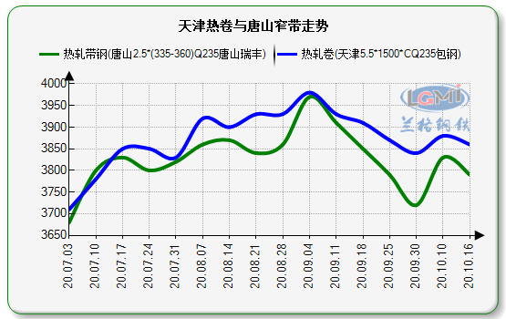 据兰格钢铁网云商平台监测数据显示:截至2020年10月16日,唐山145系列热轧带钢主流报3780元/吨,较上周五维稳。唐山热轧带钢(2.5*355mm)唐山瑞丰2.5*(335-360)报3810元/吨,较上周五维稳。(2.5*355mm)唐山金马3800元/吨,较上周五降10元/吨。