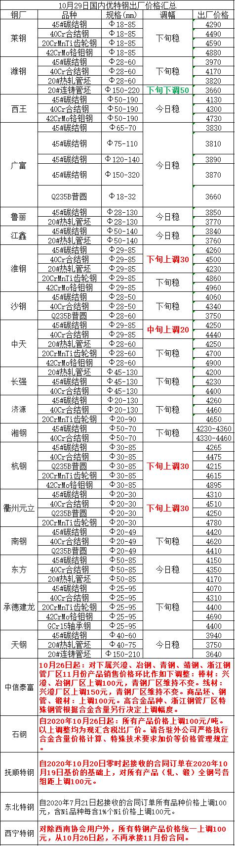 钢厂方面:今日凌钢对东北地区碳结钢、合结钢、齿轮钢、Q355B上调20元,华北地区碳结钢、合结钢、Q355B上调20元,山东地区碳结钢、合结钢、Q355B上调20元,其他品种价格不动。