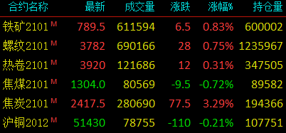 ◎螺纹钢涨0.75%、热卷(3956, 38.00, 0.97%)涨0.31%