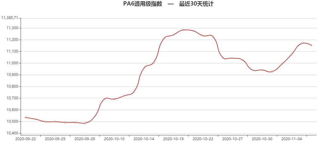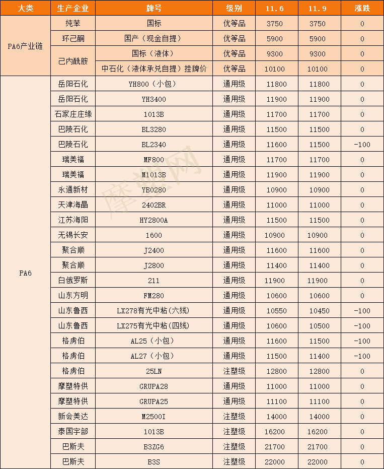 摩塑网交易平台成交情况,PA6市场价格主要表现为小幅回落。市场中聚合工厂报价部分下滑;上游维持稳定,下游跟进缓慢,商家报价部分回调;根据摩塑网平台成交数据显示,预计今日PA6市场价格应会是窄幅整理!