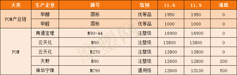 摩塑网交易平台成交情况,POM市场价格主要表现继续上调。市场货源偏紧,下游需求气氛良好,商家报价部分上调;平台上产品价格随市场变化;根据摩塑网平台成交数据显示,预计POM今日市场价格应会是稳中小涨!