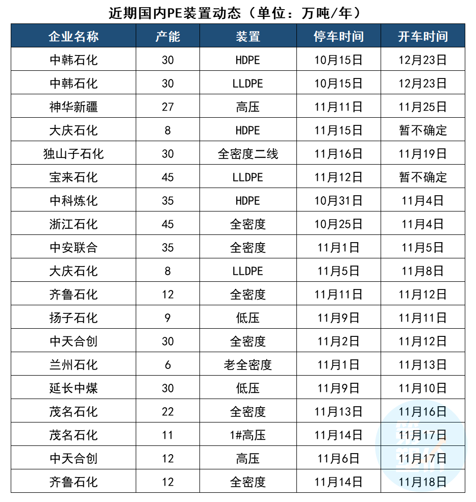 种种迹象表明,我们并不能高兴的太早。11月份聚乙烯检修继续减少,加上万华化学投产在即,国产量有望增加,另一面无论价格如何变动,下游工厂采购积极性始终难以调动,再加上高价位制约,成交阻力较为明显。供需基本面偏弱情况下,这波行情恐怕无法维持太久。